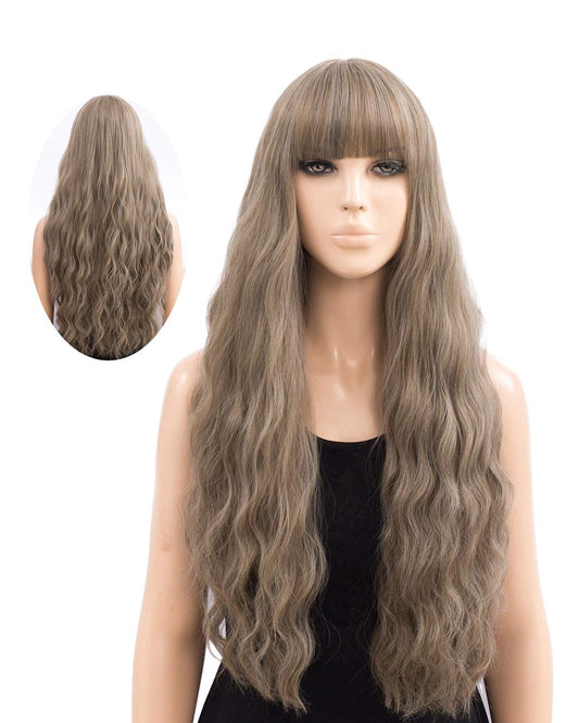 Blonde Wig for Women Long Wavy Heat Resistant Fiber Wigs Side Bangs Cosplay Party