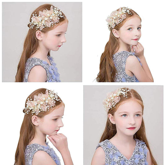 Hair Vines Princess Wedding Headpiece, Pearl Crystal Headwear for Wedding Tiara Flower Headband, Accessories to Baby Girl Shows, Children' Day, Christmas(Gold)
