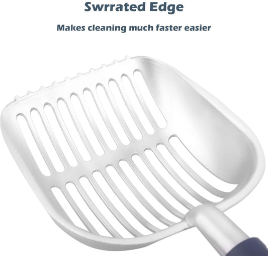 Solid Cat Litter Scoop with Silicone Handle, Aluminum Alloy Deep Cat Shovel, Large Pet Litter Scoop Metal with Mesh, Lightweight Shovel Suitable for All Kitty Litter Box