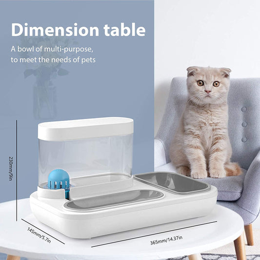 Cats Water Gravity Dispenser 1500ml Cat Bowls for Food and Water Double Bowls Detachable Anti Spill Non Slip Base Stable Premium for Dog Puppy Pets